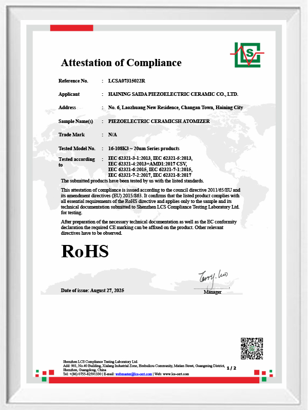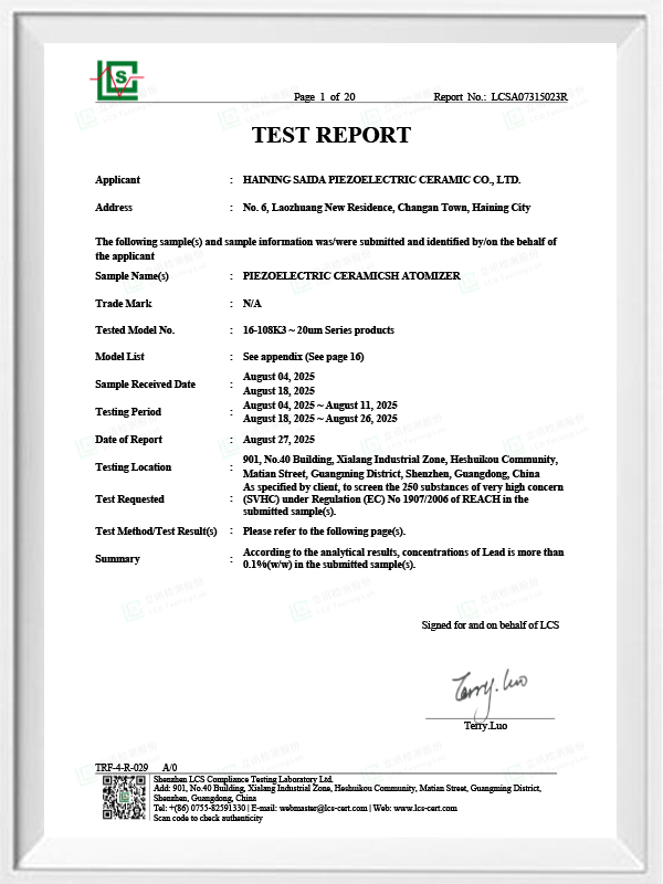 A cerâmica piezoelétrica sem chumbo é conhecida como a "pérola" da indústria piezoelétrica, o futuro substituirá gradativamente a cerâmica piezoelétrica à base de chumbo em todos os aspectos, que já possui o mesmo desempenho piezoelétrico, e a folha piezoelétrica à base de chumbo. É completamente atóxico, inofensivo, seguro e ecologicamente correto, não contém chumbo, antimônio e outros metais pesados e outros elementos restritos a Rohs, alta temperatura Curie Tc-328 ° C, perda elétrica muito baixa TangentLoss Portanto, o chip de atomização médica piezoelétrica sem chumbo tem grande valor comercial e valor universal, cerâmica piezoelétrica sem chumbo verdadeiramente não tóxica e ecologicamente correta, além de desempenho piezoelétrico não poluente proporcional à cerâmica à base de chumbo, se tornará uma popular cerâmica piezoelétrica ecologicamente correta. Após anos de pesquisa e desenvolvimento, após testes e experimentações contínuas, a empresa conseguiu fabricar o chip de atomização médica sem chumbo para atingir a mesma quantidade de atomização que o chip de atomização à base de chumbo e os mesmos requisitos de partículas de diâmetro. Chip nebulizador de malha médica sem chumbo, certamente brilhará e terá uma ampla gama de cenários de uso.